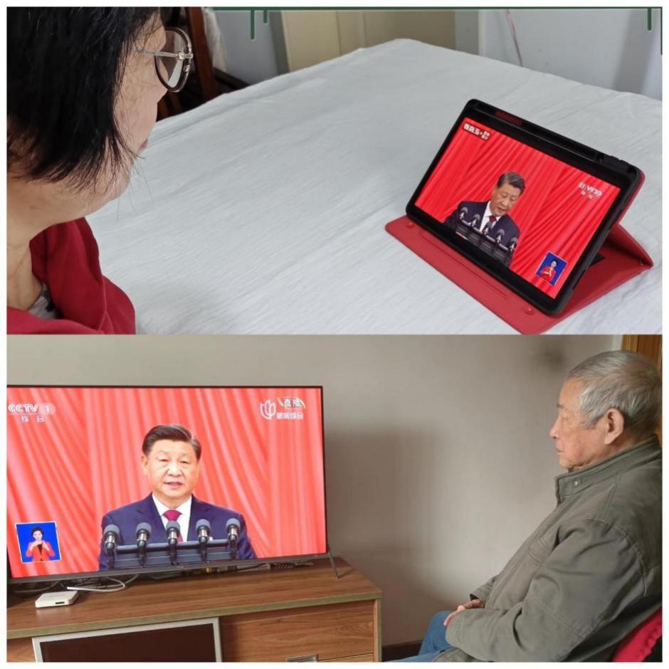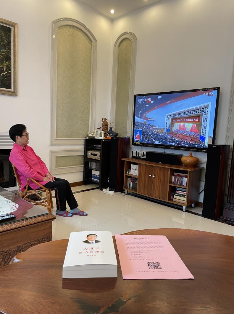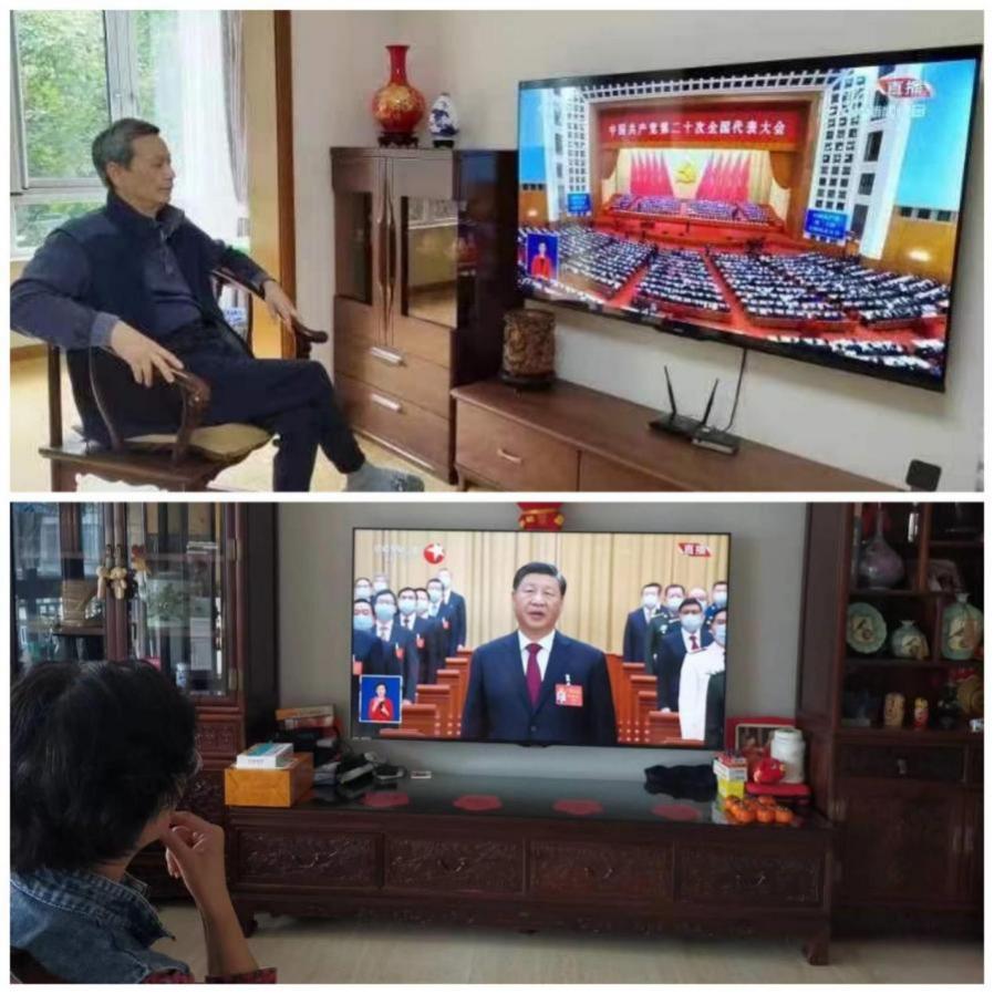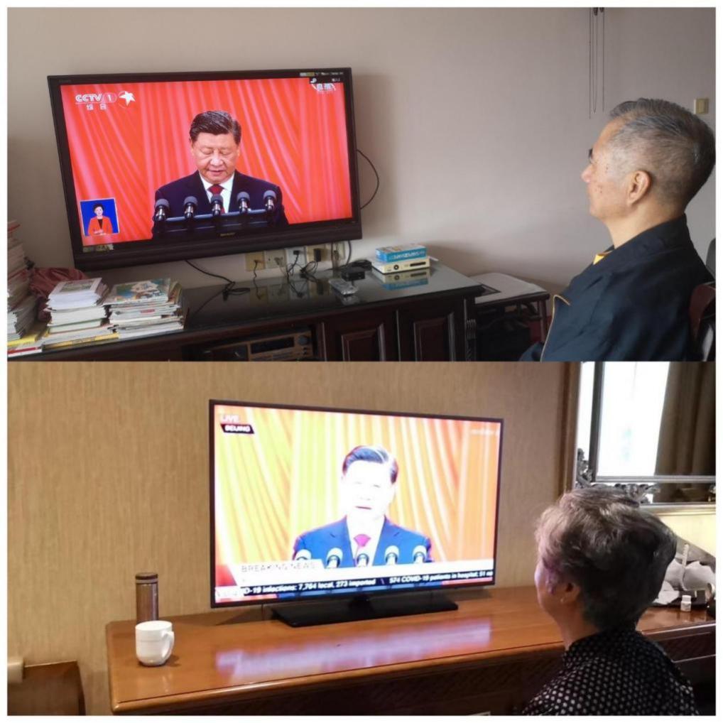10月16日,学校342名离退休党员,有91岁满头银发的抗美援朝老战士、有刚手术出院的退休支部书记、有身在海外的老党员......他们一大早就守候在电视机旁,准备好纸笔,热情期待党的二十大召开,认真记录报告中的重要内容。