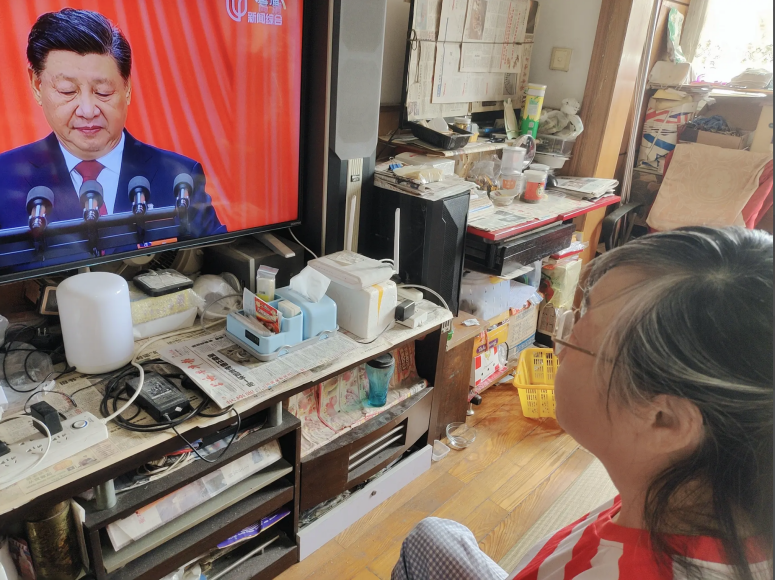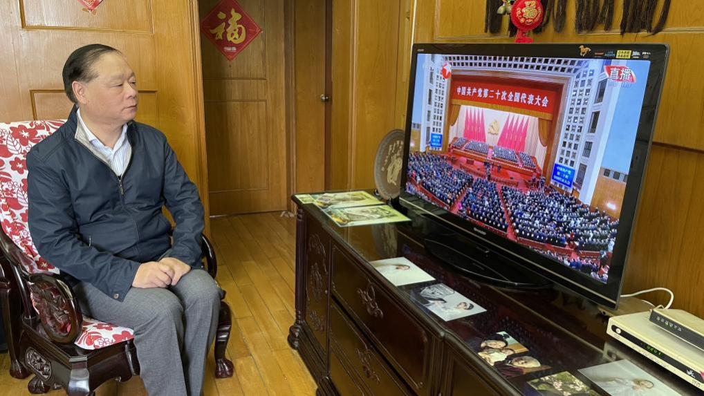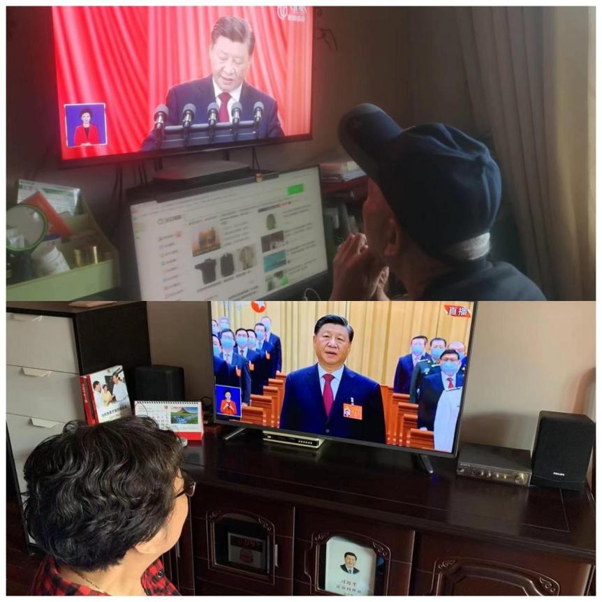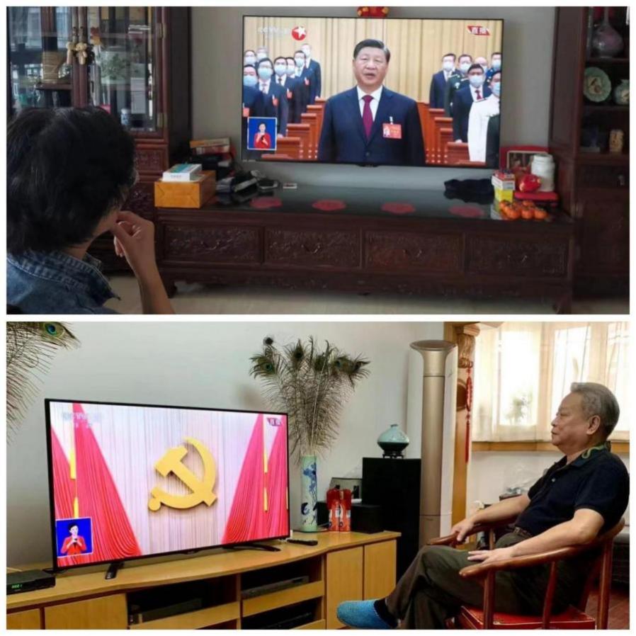 听党话:老党员认真收看党的二十大开幕会