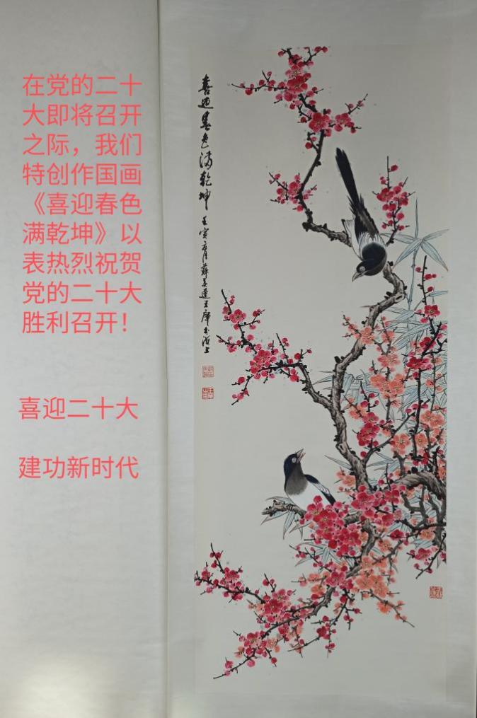 退休一支部王庠、苏美莲为庆祝党的二十大召开作画。