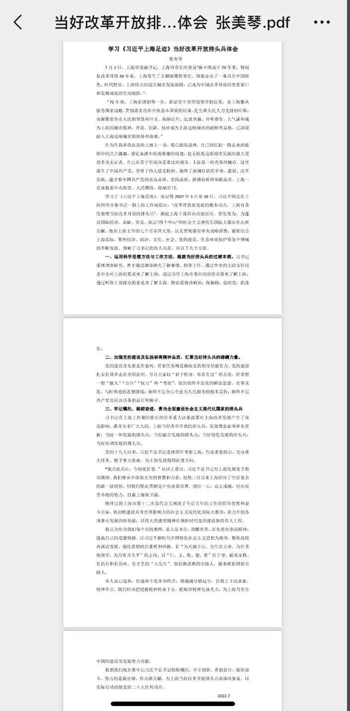 退休党员张美琴学习心得。