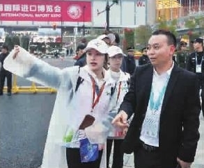 “您留意脚下地毯的颜色,就不会找错展馆了”“您直接往前走,拐个弯就到,这样走最近”……手拿地图、时不时小跑几步将参观者引到正确的方向,在3.1馆和4.1馆的几个主通道旁,上海大学中文系研二女生苏静如和她的70余名小伙伴,从上岗的一刻开始几乎一刻不停。原本只需原地不动的“指路岗”,一天下来就因为这一次次的“小跑几步”,竟然也达到了28000多步。