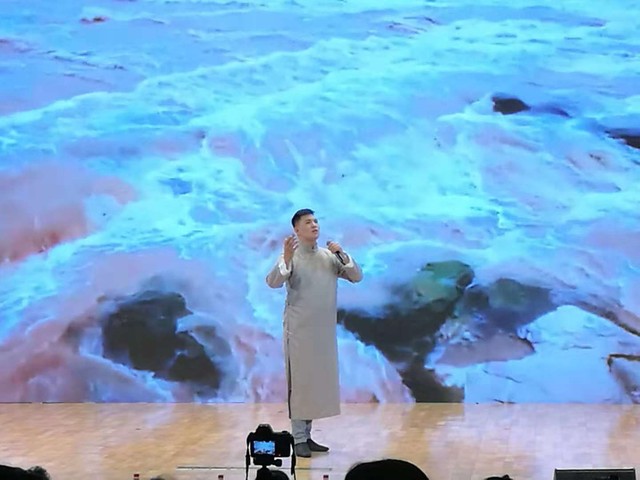 “华彩新章”,则以我校留学生阿依奔的《黄河颂》开启了对当代经典诗歌的诠释,《我的南方和北方》、《祖国啊,我亲爱的祖国》、《我爱你,中国》等表达的都是对中国的热爱。