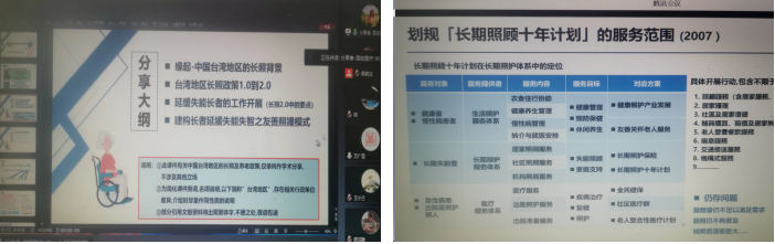 王淑宜进行了《建构推迟失能失智之长者友善照护模式》主题报告。在报告中,介绍了我国台湾地区长期护理与社会照护事业发展规划与历程,解读了台湾卫生保健相关政策,并对“长期照护十年计划”“台湾长期照护2.0计划”的具体举措进行了详细说明。