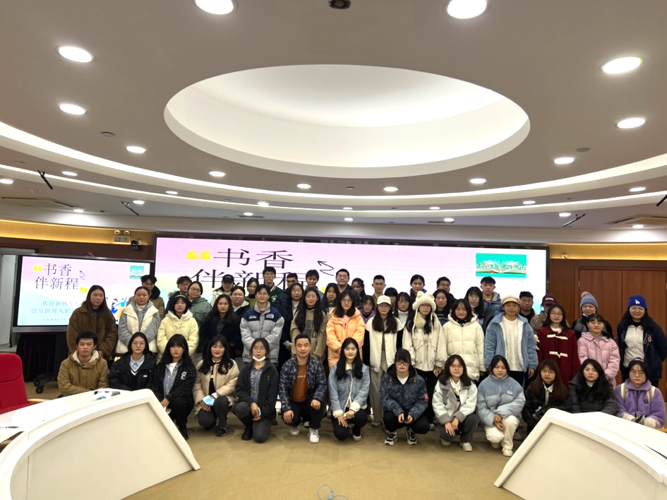书香伴新程,青春共奋进。新学期伊始,图书馆阅读推广与服务部于2月16日在南苑图书馆5楼报告厅召开馆员助理“入职”迎新会,勤工助学全体成员与会,由郝辰业老师和吴慧同学共同主持。此次会议通过游戏互动、代表发言等环节,帮助新上岗的勤工助学同学快速地融入到图书馆馆员助理的队伍中,强化了工作责任意识,提高了团队凝聚力。