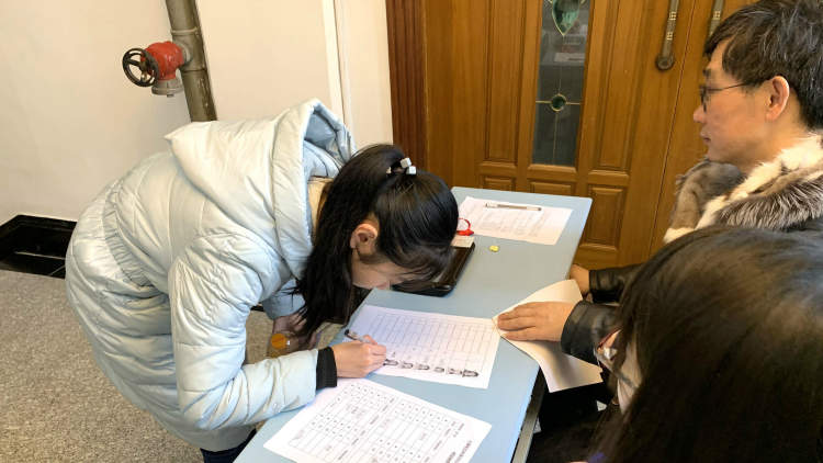 今日参加上海电力大学的每个考生,在测试前都会随机抽取一个抽签号,这个号将决定考生进入哪个考场以及测试的顺序。