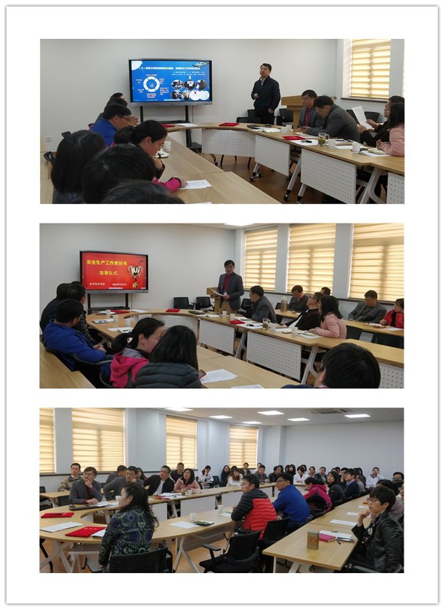随后,医学技术学院办公室主任苑国栋从保密工作、意识形态安全、财产人身安全、网络信息安全等方面传达了上周学校安全工作会议精神。接着,在全体教职工的见证下,学院党总支书记兼院长刘敏娟作为学院安全工作责任人分别与副院长陈林军、副院长李延飞、副书记高晓霞和学院安全员苑国栋老师签署了《安全生产工作责任书》和《2019年安全生产承诺书》,再由副院长和副书记分别与教研室主任、实验中心主任、辅导员签署责任书和承诺书,将安全意识、安全责任、层层传递,形成全员参与、齐抓共管的工作机制。