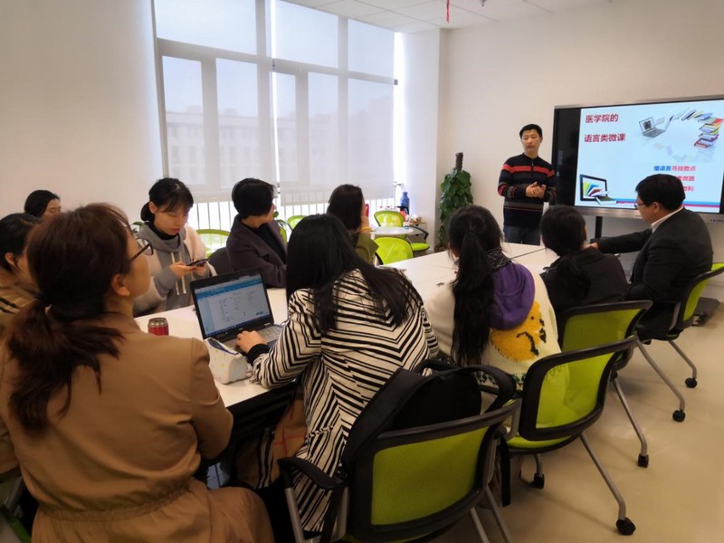 4月4日,由学校教师发展中心组织举办的教学沙龙中,获得全国首届人卫慕课在线开发课程建设比赛一等奖的外语教学部阮俊斌老师与来自各个学院的老师们进行交流,并作了题为《“微”中窥“景”》的微课制作为主题的演讲。