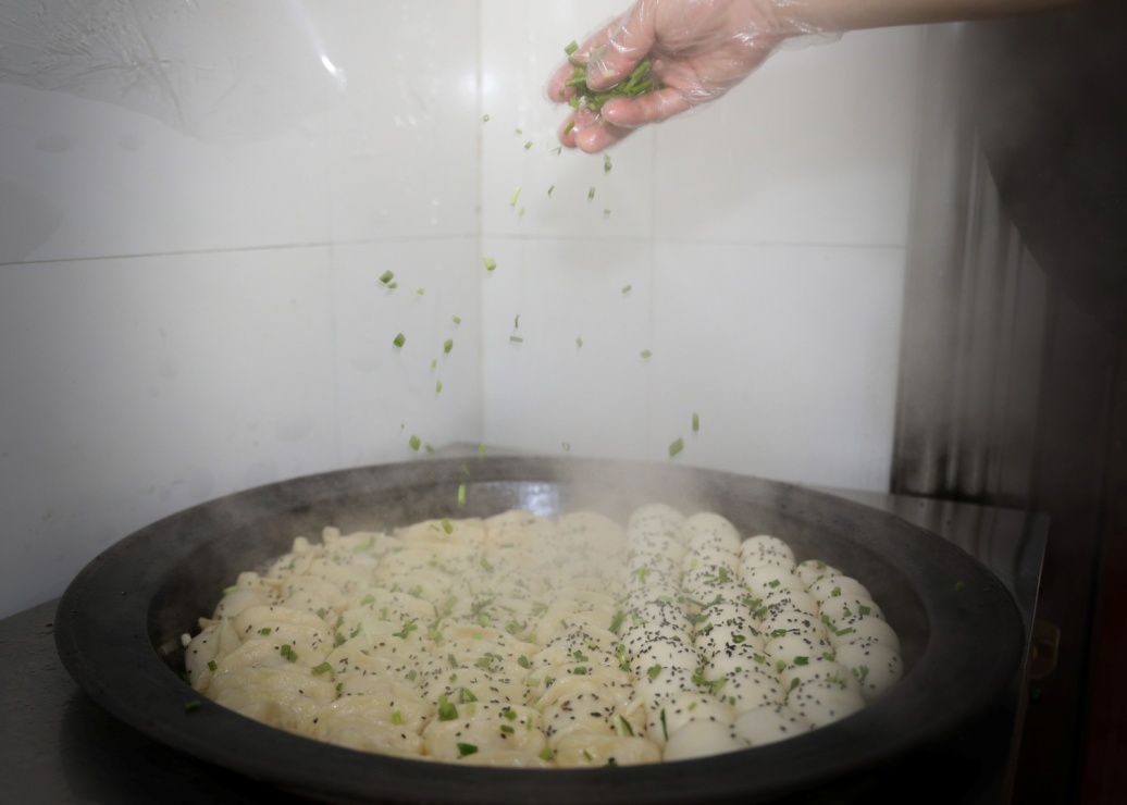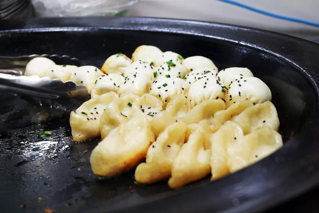 药学院同学说:“我最喜欢吃的是生煎和锅贴,最先吸引我的是它刚被端出来时锅底噼啪作响的声音,外皮干干脆脆,咬一口里面还会爆汁,口感很好。”