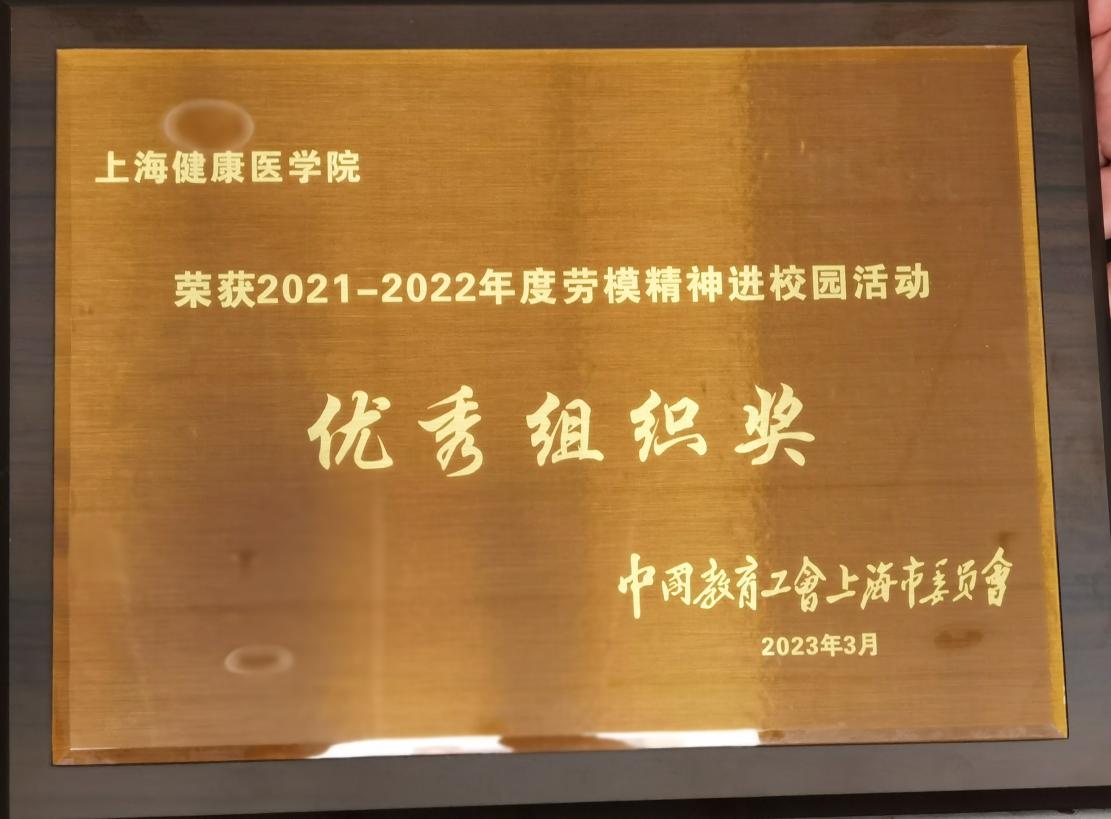 上海教育工会副主席陶文捷介绍了教育系统“劳模创新工作室”的建设情况。会议表彰了教育系统40家2021-2022年度“劳模精神进校园”活动优秀组织奖单位并颁发了奖牌。我校工会常务副主席凌文惠代表学校领奖。