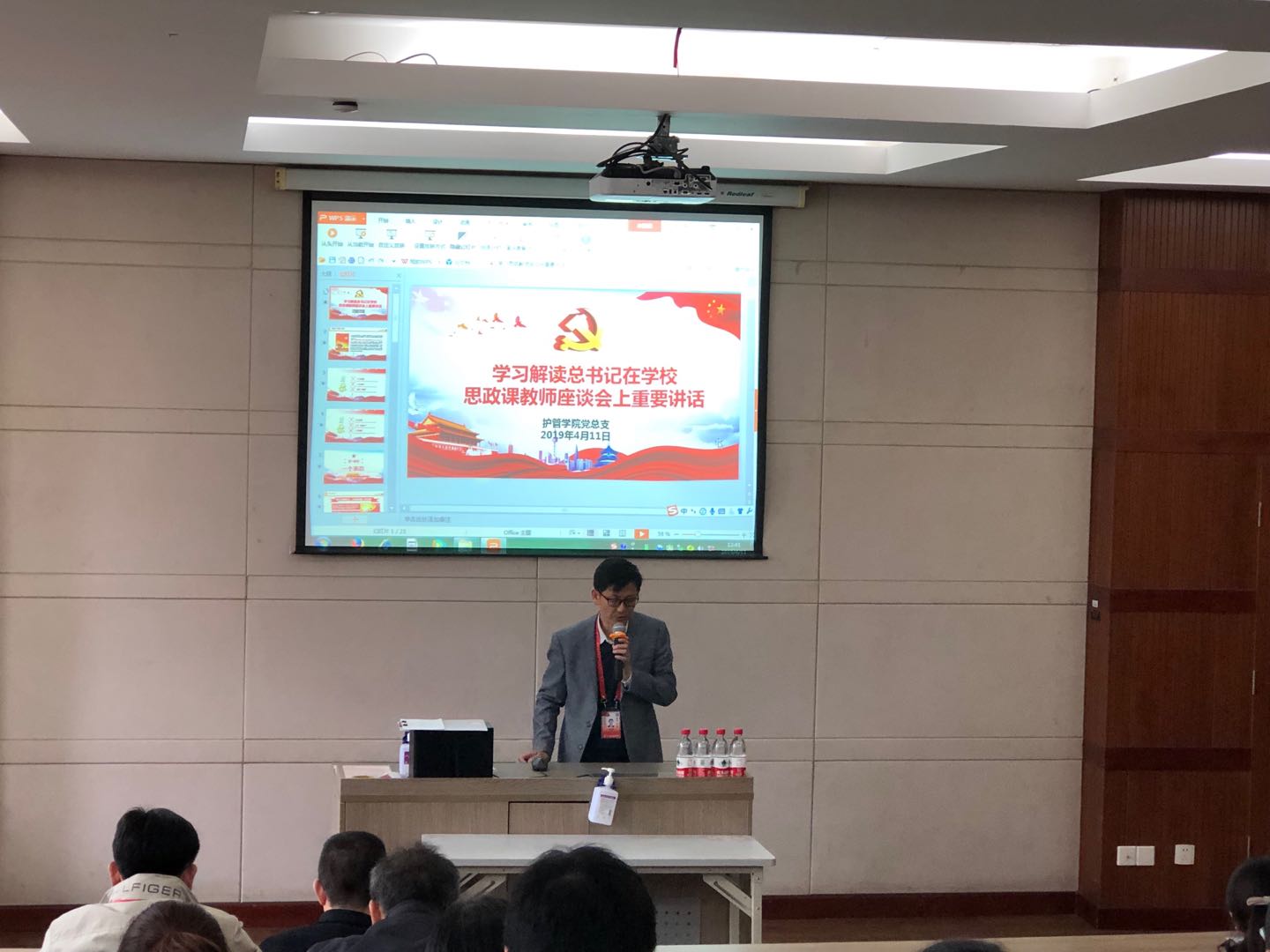 我院于4月11日、4月19日两次召开全院教职工大会。4月11日学院领导传达了《上海教育大会和全国深化职业教育改革电视电话会议精神》、《习近平总书记思政课程讲话学习精神》、进行了“2019年教育思想大讨论”的动员和工作部署。教书育人,是教师之根本;前沿创新,是新时代教师的使命。4月19日,我院组织全院教职工汇聚教室,邀请图书馆俞馆长一行和爱思唯尔公司培训师介绍clinical key 以及CK for Nursing的搜索及使用攻略,还邀请了OVID公司培训师给我们做Lippincoot Procedures 软件的介绍。在培训过程中,教师们积极参与互动问答,提出搜索引擎的权限和功能、技能操作软件课堂应用等问题,培训后教师们紧追不舍获得了更多科研方向的线索、获得了软件公司跟踪服务的途径。