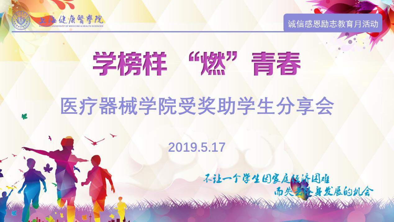 5月17日晚8时,医疗器械学院在新南苑18号楼506室开展了18级受奖助学生的学习分享会。学院辅导员李越华老师、王海峰老师以及学院部分受助学生参与了此次活动。