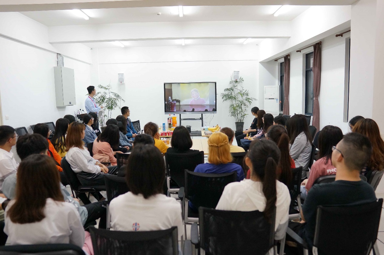 王老师向受助学生们依次介绍了学校2019年诚信感恩励志教育月活动:“我与祖国共成长”主题征文活动,以“中国梦、健康行、资助情”为主题的学生资助宣传大使评选活动。王老师鼓励同学们讲述自己在国家资助政策支持下的成长历程,踊跃参与主题征文活动。随后,王老师介绍了学生资助宣传大使评选活动,动员受奖助学生利用暑假回家乡、回母校开展资助政策宣讲活动。为了使同学们更加直观地了解资助宣传大使的工作内容,王老师向大家播放了2018年获得上海市十佳资助宣传大使称号的选手决赛视频,其中包含我校学生曲嘎的演讲与展示。通过学习十佳资助宣传大使的暑期工作经历,同学们不仅明确了作为一名资助宣传大使的职责,也对“不让一个学生因家庭经济困难而失去终身发展的机会” 有了更深地领悟。学院的资助育人活动作为学校2019年诚信感恩励志教育月活动的组成部分,王老师征求了同学们对下次活动的创想和建议。同时,李老师与在场的同学们分享了当前的学习与就业情势,并为同学们提供了前进的方向与建议。