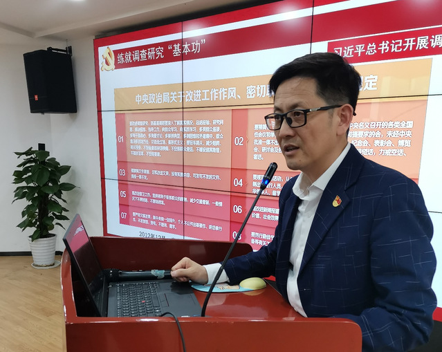 党委常委、组织部部长汤磊讲授主题教育专题党课《练就调查研究基本功 让调查研究蔚然成风》。他从党史观的角度、方法论的角度、实践论的角度,在用好调查研究“传家宝”、练就调查研究“基本功”、掌握调查研究“金钥匙”三个方面做了精彩的辅导,并强调在全党大兴调查研究,是转变工作作风、密切联系群众、提高履职本领、强化责任担当的有效途径。对广大党员、干部而言,只有通过深入细致的调查研究,把握事物的本质和规律,才能出实招、见实效,使调查研究的过程成为学思践悟习近平新时代中国特色社会主义思想的过程,切实把调研成果转化为解决问题、促进发展的实际行动,推动学校高质量发展。