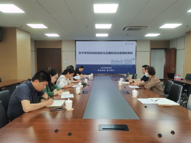 为扎实推进主题教育,以调研开路解决实际问题,5月30日下午,学校在北苑1号楼902会议室召开推动科研助理优化设置和深化管理调研会,校长吴韬,校党委副书记、副校长唐红梅出席调研会,学生处、科技处、人事处、财务处、党校办等部门负责人参加调研。会议由吴韬主持。