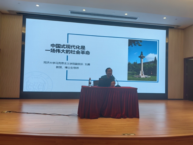 在报告中,刘勇从社会革命的“纯粹一般”、政治革命是社会革命的“历史火车头”、社会革命的“具体一般”、深入浅出地讲解了现代化与社会革命之间的逻辑关系和内在联系,最后,结合理论与实际、历史与现实,从时代逻辑、理论逻辑、历史逻辑、现实逻辑、价值逻辑和主体逻辑6个方面对中国式现代化进行了系统解读,阐述了中国式现代化是一场新的伟大的社会革命。