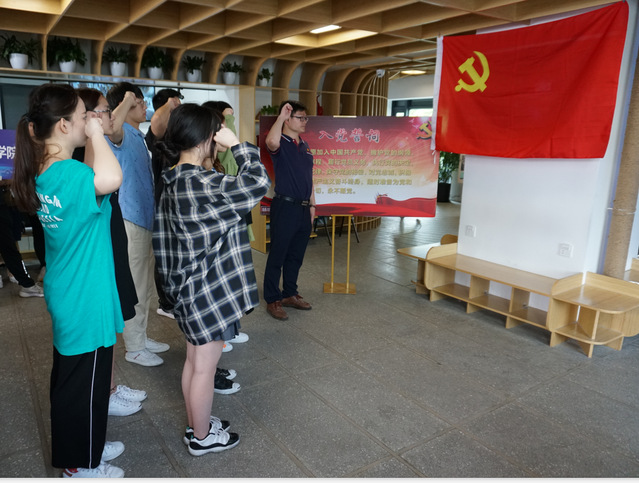 下午13:30,全体成员在码头集合。黄浦码头作为当时赴法勤工俭学的主要出发地,是中国赴法勤工俭学运动的重要纪念地之一。1919年3月至1920年底是赴法勤工俭学高峰期间,周恩来、邓小平、聂荣臻、蔡和森等革命志士,以留法勤工俭学学生的身份从这里登船出发,踏上寻求真理之路。他们接受马克思主义启蒙教育,在中国革命斗争实践中走上与劳动群众相结合的道路,成长为无产阶级的革命战士。在这样一个充满革命意义的码头,全体毕业生党员在学院党建员何双泉老师的带领下面对党旗,庄严宣誓,通过重温入党誓词,进一步坚定共产党员的追寻真理之旅的精神和初心。