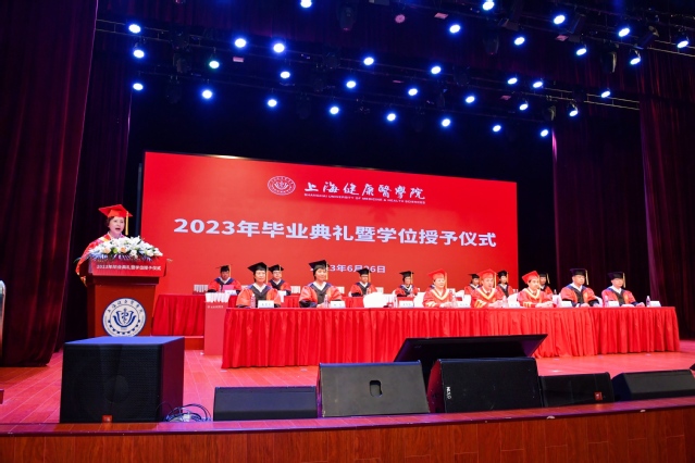 守正创新护健康,时代新人启新程。6月26日,上海健康医学院隆重举行2023年毕业典礼暨学位授予仪式,3345名健康学子从健康园启程,追光逐梦,奔赴未来。校党委书记郭永瑾、校长吴韬、党委副书记、纪委书记李明磊、党委副书记、副校长唐红梅、附属医院院长、各学院及职能部门负责人、毕业生家长代表、2023届毕业生代表齐聚北苑400人报告厅,共同见证这一隆重时刻,同时有2.9万人次在线观看毕业典礼直播。唐红梅主持毕业典礼。在雄壮的国歌声中,毕业典礼正式开始。