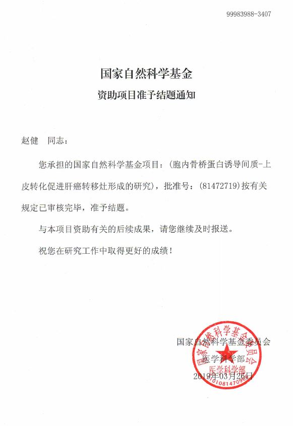 2019年2月,我校向国家自科科学基金委提交了2份结题材料,经国家自科科学基金委专家评审,一致通过结题验收。