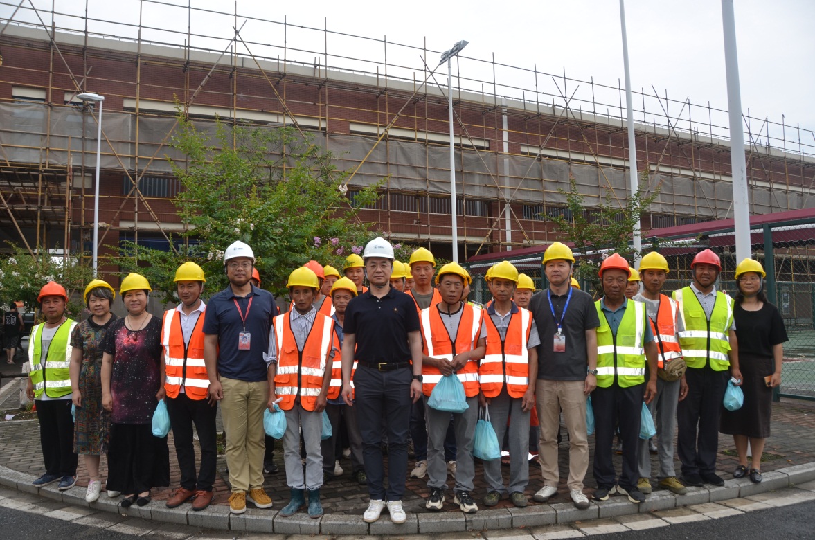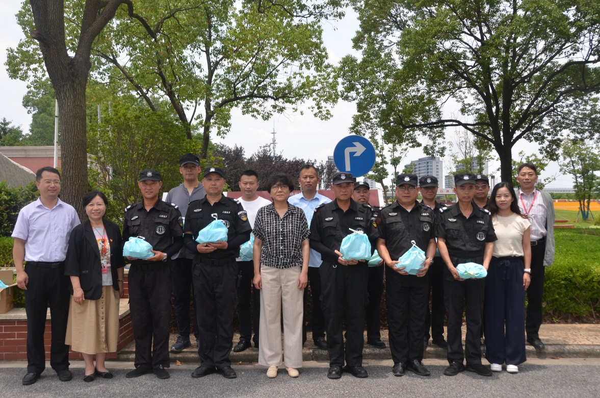 连日来,上海持续高温,闷热暑气裹挟着滚滚热浪席卷校园,广大后勤、安保、基建工地和校园管理服务一线的员工坚守工作岗位,战高温、斗酷暑,用自己的辛勤汗水维护着校园的平稳有序运转。为进一步做好夏季劳动保护和防暑降温工作,有效预防和控制高温中暑和各类生产安全事故的发生,切实保障广大教职工的安全和健康,校工会联合后勤、基建、保卫等部门组织开展“夏送清凉”的慰问活动。校党委书记郭永瑾,校长吴韬,党委副书记、工会主席于莹及相关职能部处负责人一同前往学校超市、食堂、物业、基建工地、安保门岗进行慰问。
