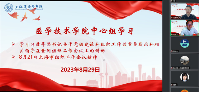 为深入学习贯彻党的二十大精神和习近平总书记关于党的建设的重要思想,全面落实全国组织工作会议和上海市组织工作会议精神,医学技术学院于8月29日开展中心组学习,本次学习由学院党总支书记、院长刘敏娟主持,中心组全体成员参加。