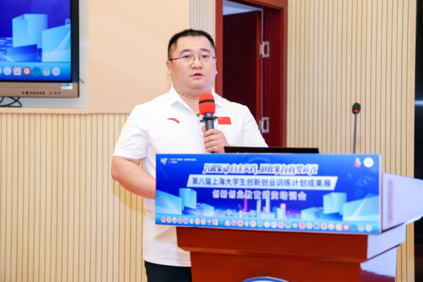 唐红梅在筹备会致辞中指出:上海健康医学院是一所具有强烈创新创业基因的学校,经过实践和探索,学校逐步构建了“课堂教学、自主学习、结合实践、指导帮扶、文化引领”融为一体的应用技术型医学院校创新创业教育体系。截至目前,学校累计成功申报上海市级大学生创新创业训练项目703项、国家级327项。大创项目不仅培养了同学的创新精神、创业意识,更有效支撑了学校参加“互联网+”等创新创业大赛和各类学科竞赛。学校将以更加饱满的热情、务实的作风、高效的服务,全力做好本次成果展的各项服务保障工作。