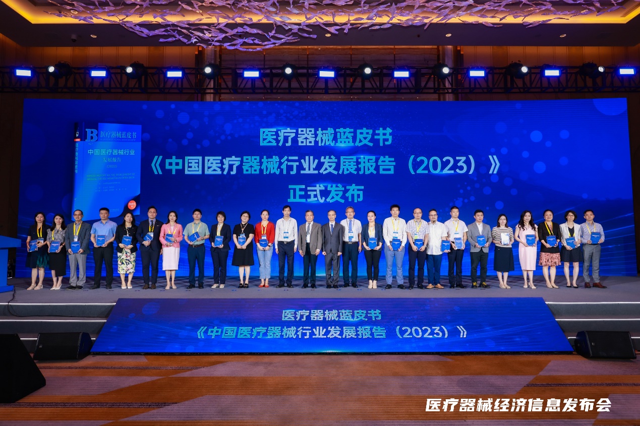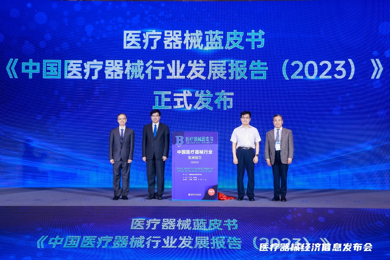 2023年9月25日,我校医疗器械学院蒋海洪副教授参与主编的《医疗器械蓝皮书:中国医疗器械行业发展报告(2023)》在国家药品监督管理局南方医药经济研究所主办的“2023医疗器械经济信息发布会”上正式发布。发布会现场,国家药品监督管理局徐景和副局长、社会科学文献出版社冀祥德社长、中国药品监督管理研究会王宝亭副会长、国家药品监督管理局南方医药经济研究所卢忠所长一起为2023年版中国医疗器械蓝皮书揭幕。蓝皮书主编王宝亭对《中国医疗器械行业发展报告(2023)》的编制过程作了主题分享。王宝亭、蒋海洪、李强和卢忠等四位主编为相关企业赠送了最新版的医疗器械蓝皮书。