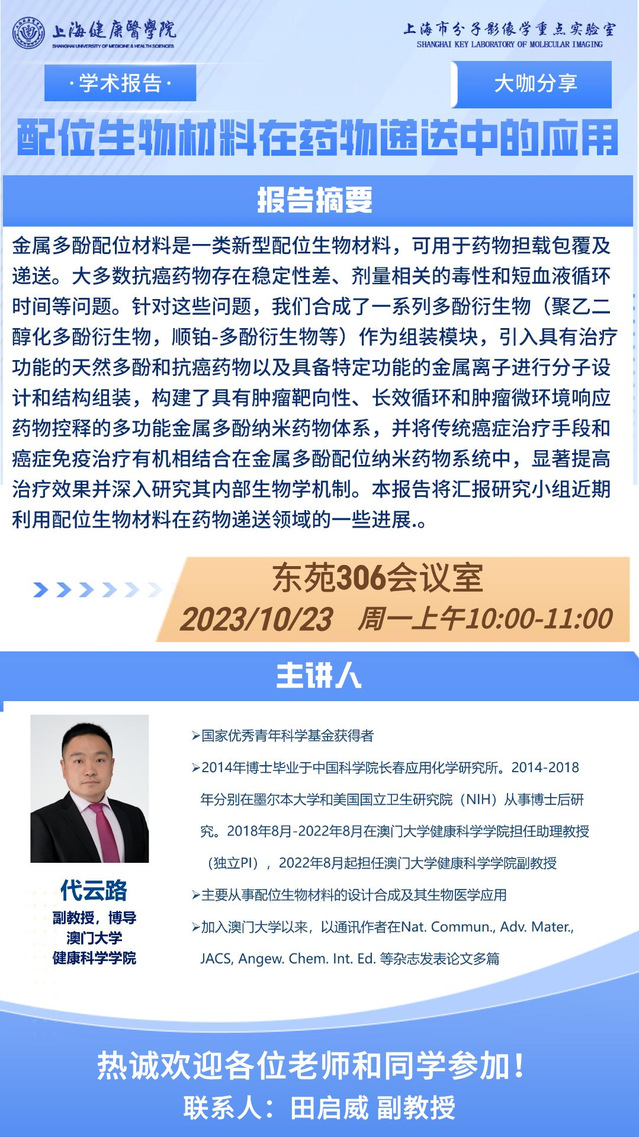 学术沙龙:配位生物材料在药物递送中的应用