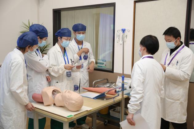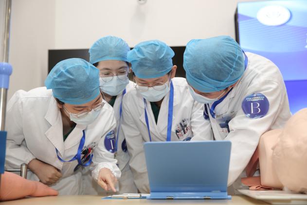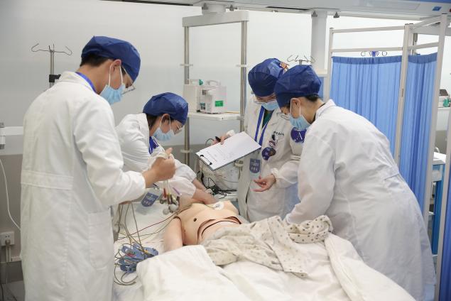 大赛参照全国大学生临床技能竞赛模式,全方位考察选手理论知识、临床技能、临床思维、沟通能力、人文关怀、团队合作、创新能力等各项技能,采取“多站式”、“赛道式”、综合急救以及理论抢答相结合的赛制,模拟临床情景进行。大赛由附属嘉定区中心医院朱堃教授担任裁判长,临床医学院教学办主任徐俪担任副裁判长,附属医院临床教师担任考官。