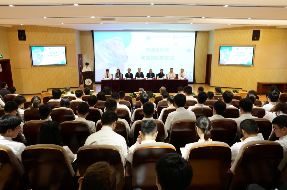 毕业典礼在庄严的《国歌》中拉开序幕,黄钢校长、桥本胜信理事、川崎忠行理事长、薛文隽处长、蒋淑敏副处长、关磊副处长、胡兆燕院长、王云光书记为临床工程技术专业全体毕业生颁发日方修业证书;在师生代表发言环节,专升本到本校的临床工程技术专业学生谢晶轶同学回忆了在学校三年的点点滴滴,感谢了母校和老师对自己的培养之恩,表达了对母校和同学们的深深不舍和美好祝福;临床工程技术专业教师陈正龙副教授激励全体毕业生“适应新环境,扎根生长”、“找准方向,厚积薄发”、“掌握系统的学习方法,学会批判性地思考”,并赠言全体毕业生前程似锦。