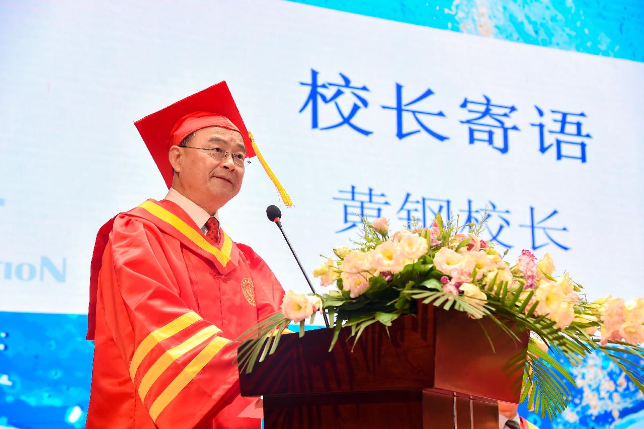 毕业典礼上,首任上海健康医学院校长黄钢说,作为首家以“健康”命名的医学院,紧扣“健康中国”之战略,以“应用型、特色性、国际化”为办学定位,以实践教学和课程改革为突破,营造学生成才与师生共同成长的育人环境。他对毕业生们说,要做有“温度”的健医人,谨记“惟愿世人安康”的初心;要做有“担当”的健医人,践行厚德至善、健行康民的使命;要做有“定力”的健医人,坚守自己的信仰和原则。
