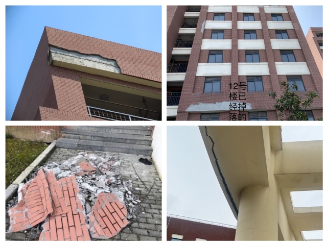 近年来,原新南苑房屋外立面陆续出现不同程度的脱落、空鼓和开裂等现象,对校园内师生的人身安全带来严重威胁。为全面彻底消除安全隐患,基建修缮管理部门主动开展调研,通过查实情、摸实况、寻对策,编制项目申报书和维修方案,经学校研究决定后申请增补入市教委大型维修项目库。在上级部门的大力支持下,经专业评审机构入、出库评审,于2023年1月正式获得项目批复,2023年6月开始实施房屋外立面抢修工程。