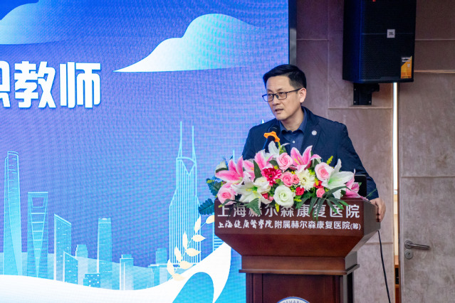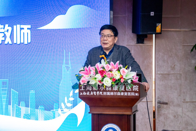 汤磊代表学校对参训学员表示欢迎,对上海健康医学院教育发展基金会和上海赫尔森康复医院的大力支持表示感谢。随着学校附属医院、附属社区卫生服务中心建设工作不断深入,以及“校-院”一体化高质量发展重点工作的推进落实,师资队伍培养成为学校全面深化高等教育综合改革服务的一项重要举措。以临床兼职师资队伍教学能力提升作为开年第一课,凸显了学校对于人才的重视。他希望大家努力学习、学以致用、用以促学、学用相长、知行合一,携手为建设高水平、全健康、国际化应用技术型医学院校而努力,共同为医学教育事业高质量发展贡献力量。