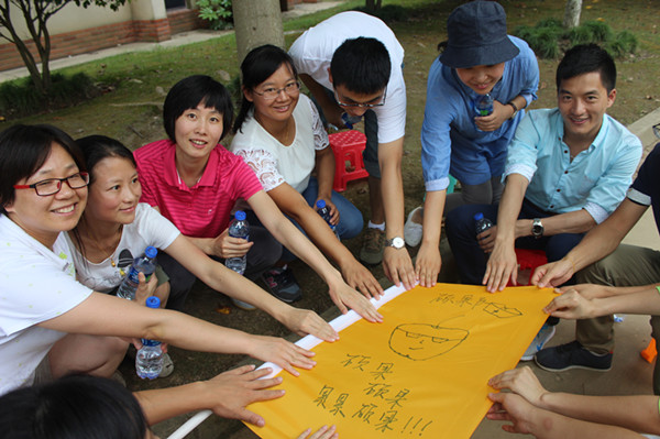 对于一个三校合并后的新团队,熟悉融合是本次培训的一大亮点。会前,工作人员已将参会的学员以学院划分为10个组,由临时推选的十位组长组织各自组员开展素质拓展及联谊活动的节目准备。