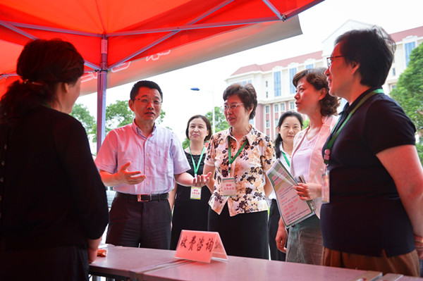 陆靖副主任在郑沈芳书记,曹蓉蓉、唐红梅、张道方副校长的陪同下,深入到北苑和南苑的新生咨询点、各院系新生接待点等,了解迎新工作的具体情况,检查指导迎新接待的各项工作,极大地鼓舞了迎新工作人员,受到了现场师生的热烈欢迎。陆副主任每到一个新生接待点,都会仔细询问新生报到情况,并与新生和家长亲切交谈。在实地查看学生寝室时,当他得知学校每幢宿舍均建有无障碍通道和无障碍寝室后,对学校精心周到的安排给予了充分肯定。在走访途中,陆靖副主任及校领导一再叮嘱相关部门要多加关心新生,给予他们多方面指导和帮助,引导新生尽快适应大学生活,积极融入到大学学习生活当中去。