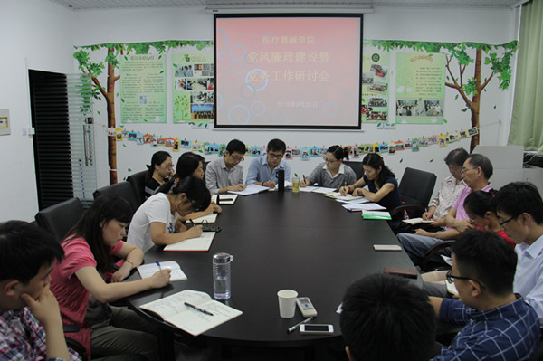 为贯彻落实《关于中秋、国庆期间进一步落实中央八项规定精神、持之以恒纠正“四风”问题的通知》和《上海健康医学院关于二级学院领导班子和成员落实党风廉政建设责任制的实施办法》文件精神,9月29日下午,医疗器械学院党总支召开了党风廉政建设暨党务工作研讨会,组织学院党政领导及教师党员代表统一学习和工作部署。会议由党总支书记刘敏娟主持。