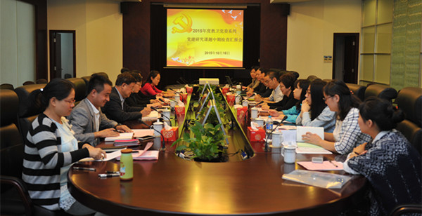 10月16日上午,2015年度教卫党委系统部分党建研究课题中期检查会在我校108会议室举行。市教卫党委系统党建研究会高校专委会主任、我校党委书记郑沈芳,市教卫党委系统党建研究会高校专委会副主任、上海教育考试院党委书记楚劲风,市教卫党委系统党建研究会顾问、高校专委会秘书长顾继虎3位专家出席会议。我校重点课题郑学文的《“中高职贯通”培养下提高发展大学生党员质量的研究》及上海健康医学院和上海金融学院的其他6个立项课题负责人进行了课题汇报。会议由党委组织部部长郭戎静主持。