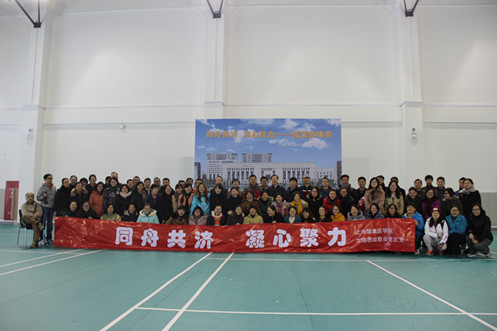 11月27日下午,文理思政联合党总支全体教师在南苑1号楼体育馆开展了以“同舟共济 凝心聚力”为主题的素质拓展训练活动。