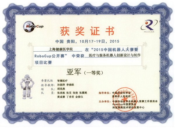 10月16日,2015中国机器人大赛暨RoboCup公开赛在贵阳国际会展中心举行。我校信息技术与管理学院、医疗器械学院的学生在孙丽萍、李晓欧、程海凭、李建华等老师的悉心指导下,参加了医疗与服务机器人大项中4个小项的比赛,成功晋级全国前16强并进入总决赛。在总决赛中,我校参赛队员奋力拼搏获得3个子赛项的一等奖,1个子赛项的二等奖。为明年参加机器人世界杯赛奠定了基础。