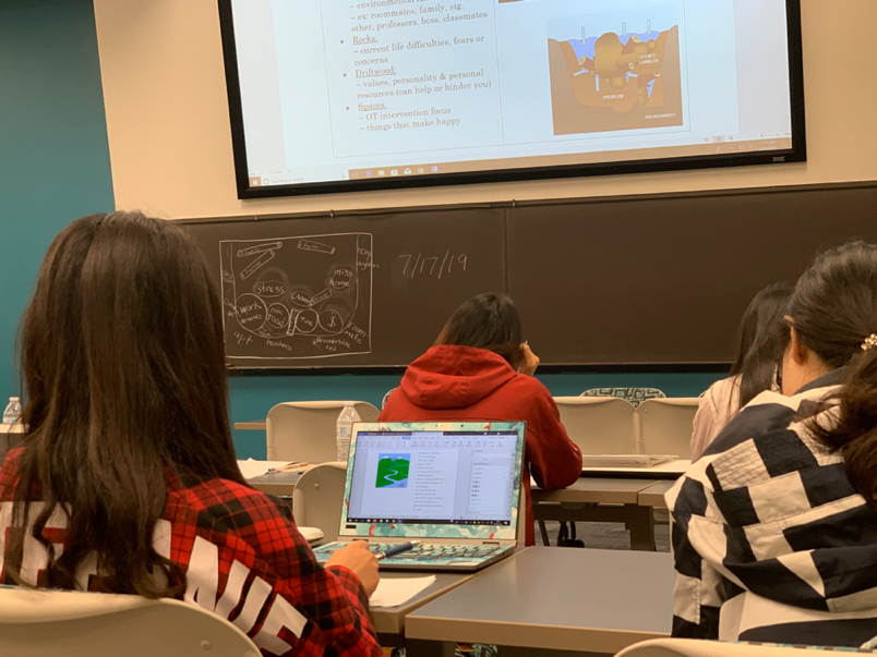 在精神卫生课上,同学们学习了精神创伤的定义,治疗途径以及防护措施。同学们通过绘画作业治疗中的Kawa(river)模型,理解生命之河的意义。
