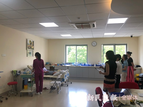 图说:杨梦菁娴熟地为病人做检查和护理新民晚报记者易蓉摄
