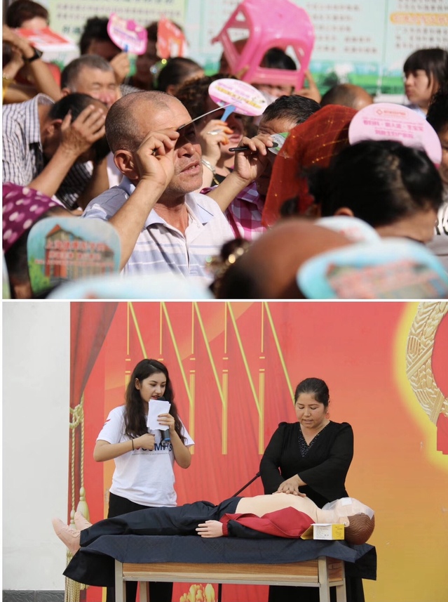 炎炎夏日,“健康行,至生命”与“健康守门人”团队成员在喀什技师学院面向3000多名学生以“特色饮食与其引起的高发疾病”为主题进行宣讲,同时将如何对抗“三高”的注意事项以舞台剧的形式呈现给同学们,并指导大家合理饮食。为了让学生们了解并学习心脏骤停、无呼吸、无意识情况下的现场急救技能,团队成员解说和演示了现场急救CPR。经过实践,同学们对社会基层建设有了深刻的心得体会,感受到了健康教育对于国民的重要性。