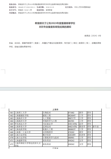 2023年市委市政府印发《关于全面深化高等教育综合改革服务促进高质量发展的意见》,要求各高校一校一策,在专业设置和调整工作中,紧密围绕办学定位和办学特色,主动服务国家战略、区域经济社会和产业发展需要,科学合理规划学科专业布局,优化人才培养结构规模,进一步提升重点领域人才精准供给水平。康复工程是一门康复医学与工程技术的医工交叉学科,是支撑老龄化社会与人民生命健康的新兴交叉学科。对于永久性功能障碍者的康复,康复工程甚至是唯一的手段,康复工程本科专业主要培养工程技术与康复医学医工交叉的高级专门人才,设计、研发及应用相关的现代康复器械(康复辅助器具),帮助失能老人、残疾人及伤病人等功能障碍者恢复其独立生活、学习、工作、回归和参与社会的能力。随着中国老龄化社会的加剧,目前中国康复工程专业人才严重缺乏。学校严格对标《普通高等学校本科专业类教学质量国家标准》基本要求,扎实做好人才培养调研,系统梳理、配置各项教学条件,不断深化医工交叉新兴学科建设,增设交叉融合新专业,积极开展专业优化、调整和新建工作。吴韬校长作为上海市临床康复优秀学科带头人在康复工程新专业的申报工作中给予了多次关心和指导。