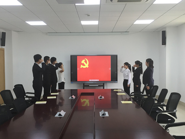 会议伊始,支部书记先为六人分发《习近平新时代中国特色社会主义思想学习纲要》与党徽,并敦促他们保持学习热情,在工作生活中不断领会党的理论,做到与时俱进,为人民服务。接下来,6位同志胸前佩戴党徽面向党旗,在支部书记的带领下举起右拳庄严宣誓。宣誓结束后,支部书记对新一批入党的同志提出希望,希望预备党员们要永远保持党员的先进性,坚定信念,牢记使命,以党员的标准严格要求自己,发挥党员的模范带头作用;自觉接受党组织的教育、监督、管理,不断提高思想觉悟和水平;加强学习,勇于实践,保持浩然正气和阳光心态,努力为党旗增辉;希望预备党员们能在自己的岗位上言出必行,正真做到自己入党宣誓时的承诺。