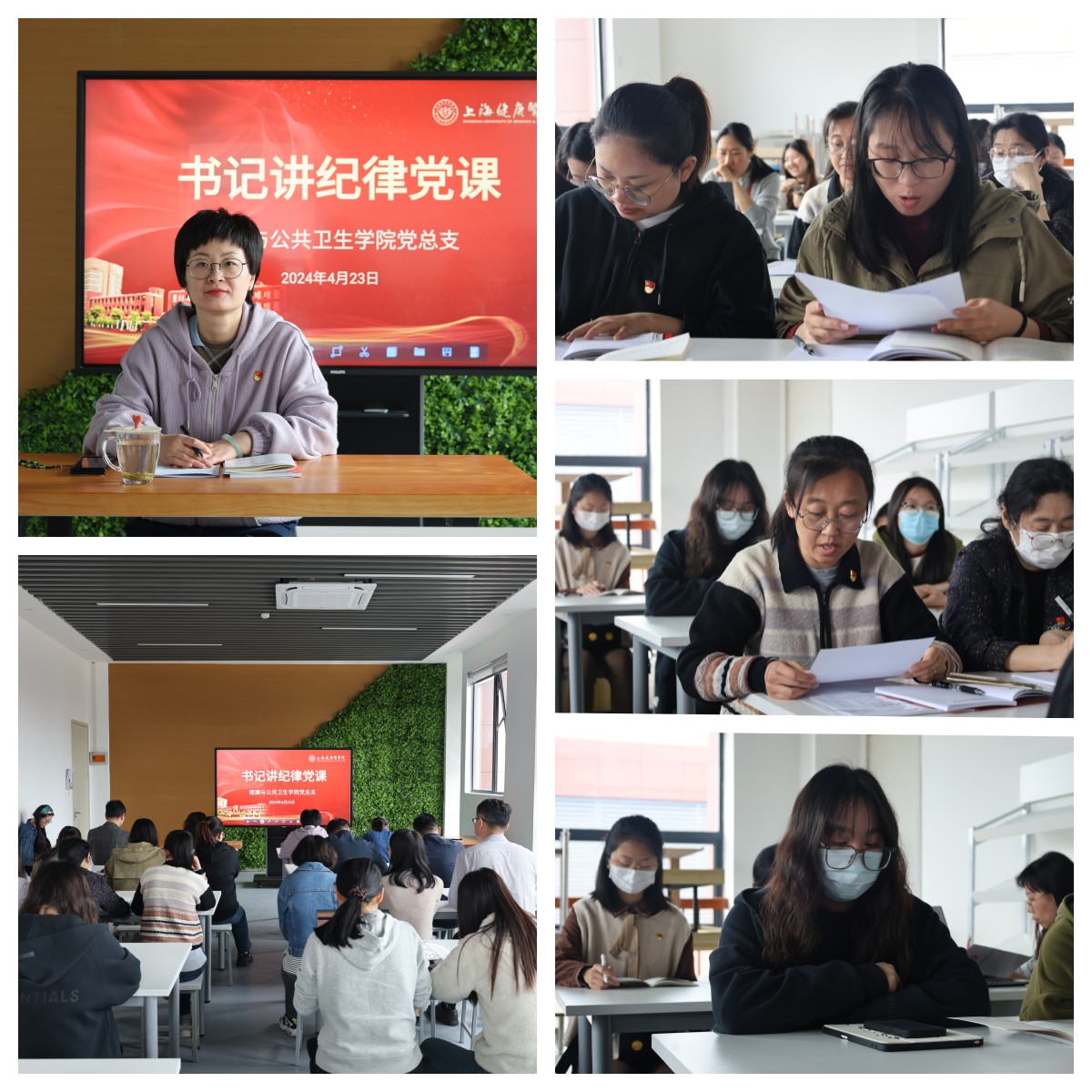 为学习贯彻《中国共产党纪律处分条例》精神,进一步增强党员纪律意识、提高党性修养、提升执纪能力,2024年4月23日中午,健康与公共卫生学院党总支书记顾斐雯在东苑4号楼417室讲授专题党课,学院班子成员、读书班成员,各党支部党员参加此次学习。