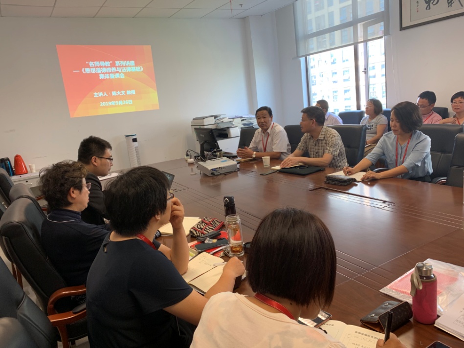 9月26日,马克思主义学院“双名助推”工程之“名师导教”集体备课会继续进行。本次特邀教育部高校思想政治理论课教学指导委员会委员、中央马克思主义理论研究和建设工程专家、全国优秀教师、同济大学教授、博士生导师陈大文,围绕《思想道德修养与法律基础》指导集体备课。备课会由马克思主义学院院长孙玉良主持。马克思主义学院的全体教师参加。