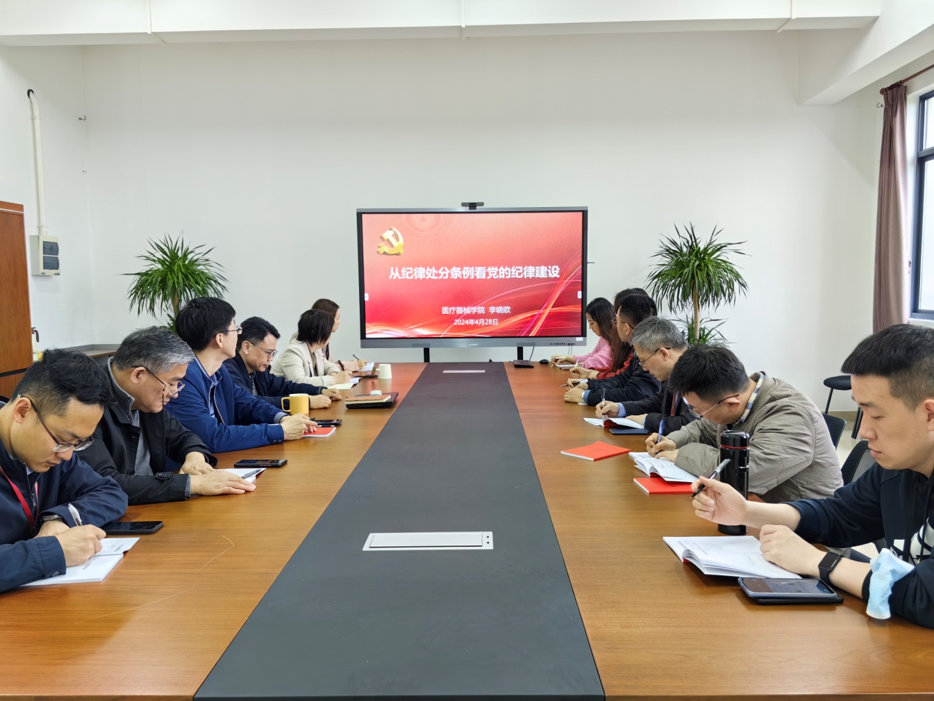 为扎实推进党纪学习教育,进一步增强党员纪律意识,4月28日上午,医疗器械学院党总支在南苑18号楼506室开展中心组学习,学院党总支书记李晓欧讲专题党纪党课“从纪律处分条例看党的纪律建设”,学院中心组成员参加学习。