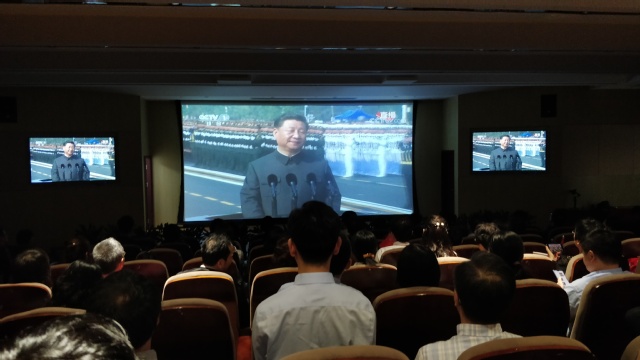 10月1日,学院领导班子在北200人报告厅观看《庆祝中华人民共和国成立70周年大会》直播。观看结束后,学院全体领导班子对习近平总书记在大会上发表的重要讲话及大会盛况进行学习交流。