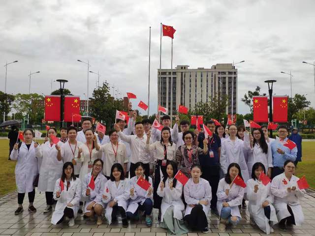 大会前,学院领导班子带领学院的全体党员、入党积极分子参加了升旗仪式。(医学技术学院)