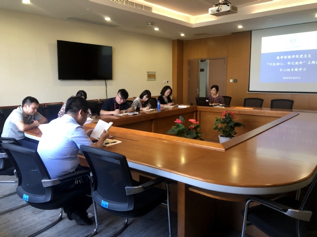 9月27日中午,医学影像学院党总支在南苑影像楼310会议室举行“不忘初心、牢记使命”主题教育中心组第二次学习研讨会,学院党总支书记刘红主持,党总支中心组成员参加学习研讨。