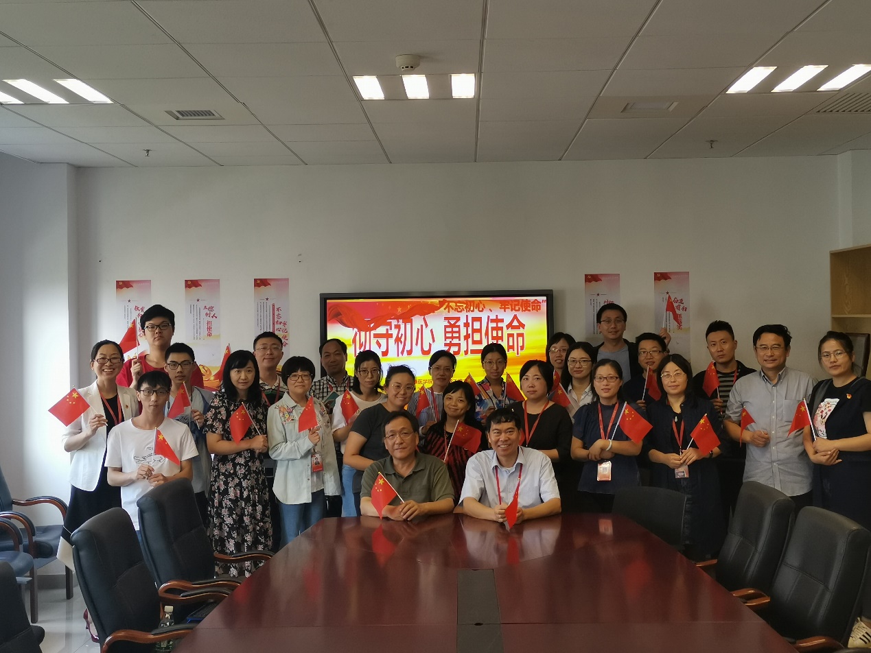 本次学习临近支部王志雄同志的退休日,支部为王志雄同志献上鲜花,感谢他为支部及学院工作做出的突出贡献。支部还为各位党员精心准备了一面小“五星红旗”,大家手舞红旗在“彻守初心,勇担使命”的标语下合影留念,一起为祖国母亲的生日送上诚挚的祝福。(药学院)